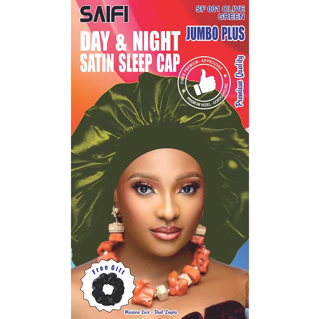 Day & Night Satin Sleep Cap Jumbo Plus Olive Green Premium Quality