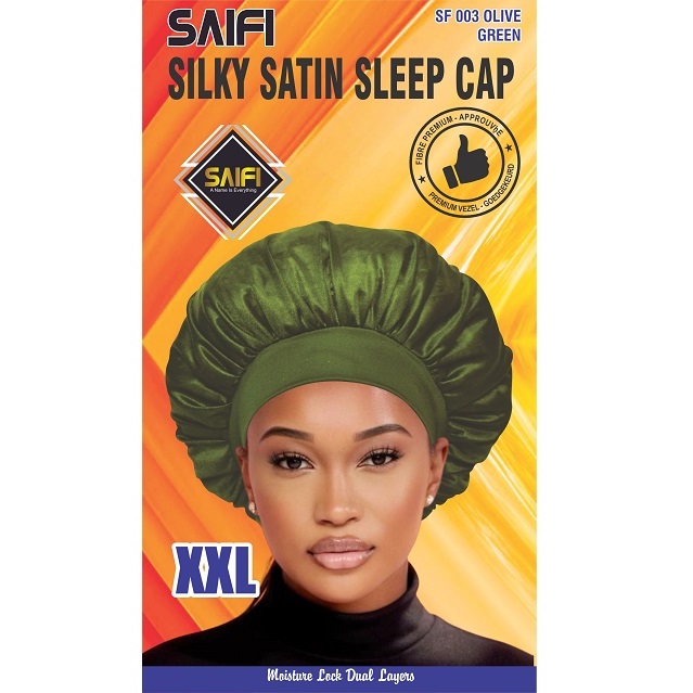 Silky Satin Sleep Cap SF014 Olive Green Premium Quality